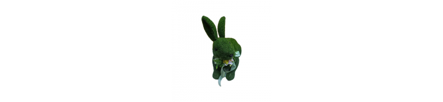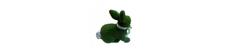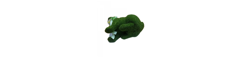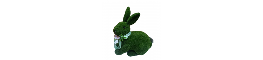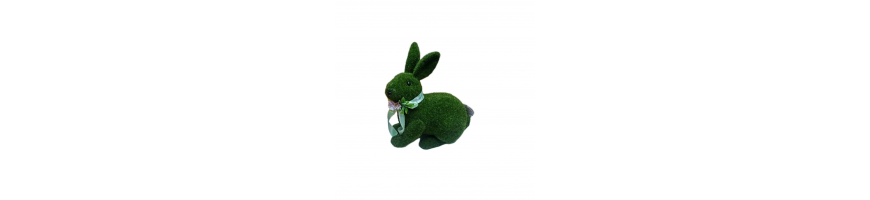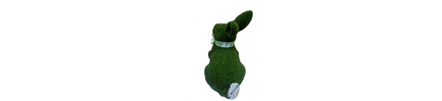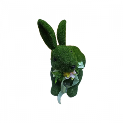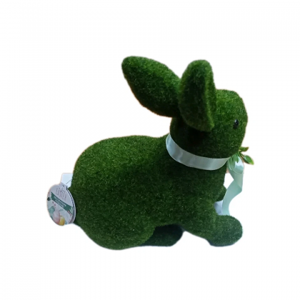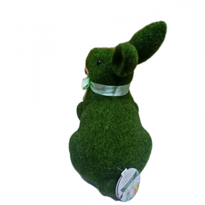 Decorazione Pasquale coniglio seduto in polistirolo rivestito con tessuto sintetico effetto muschio colore verde prato,
