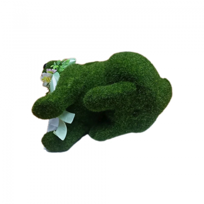 Coniglietto seduto verde effetto velvet floccato