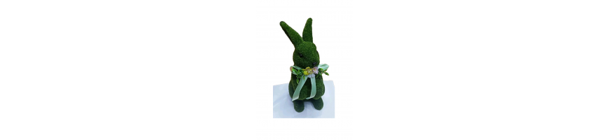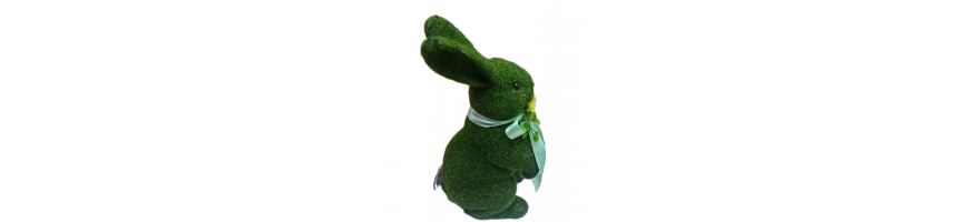 Decorazione Pasquale coniglio seduto in polistirolo rivestito con tessuto sintetico effetto muschio colore verde prato,