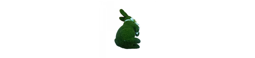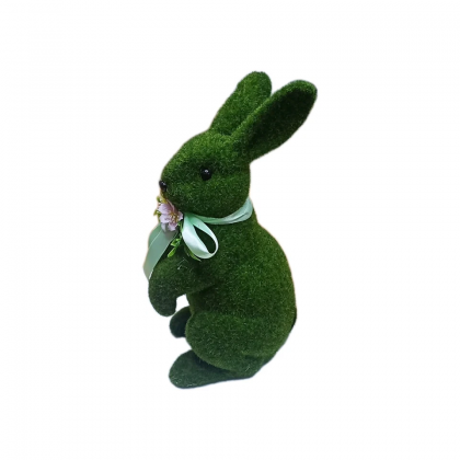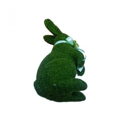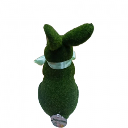 Decorazione Pasqua Coniglio seduto floccato Velvet Colore Verde h 25 cm