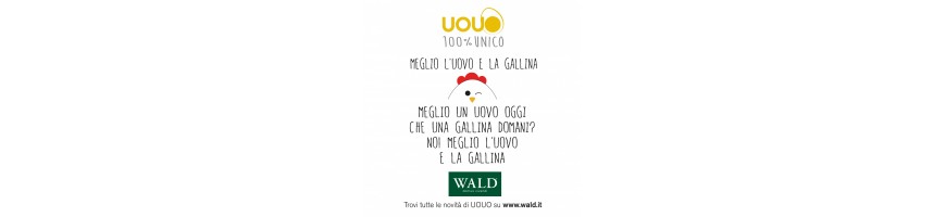 Novità Wald "UOUO", modello Gallina con scatola regalo in cartoncino e bigliettino con frase spiritosa all'interno. Un simpatico modo di fare gli Auguri!