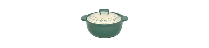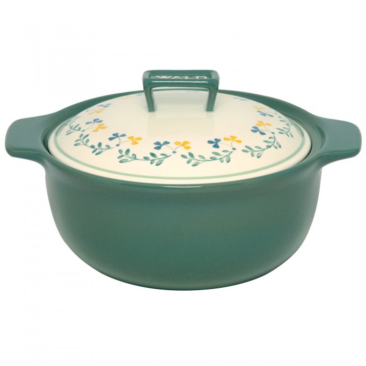 Pentola con coperchio decorato Wald 250cl, verde, in argilla da fiamma di altà qualità , linea "Sapore e benessere2Â