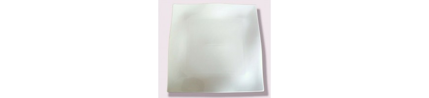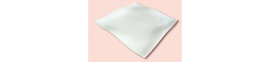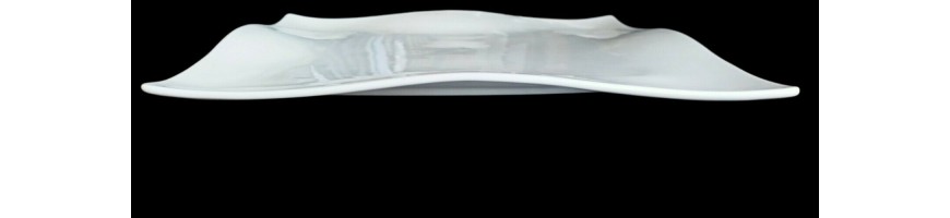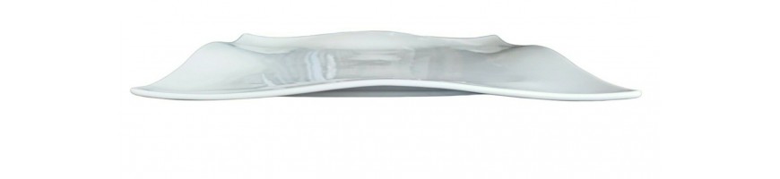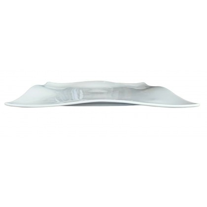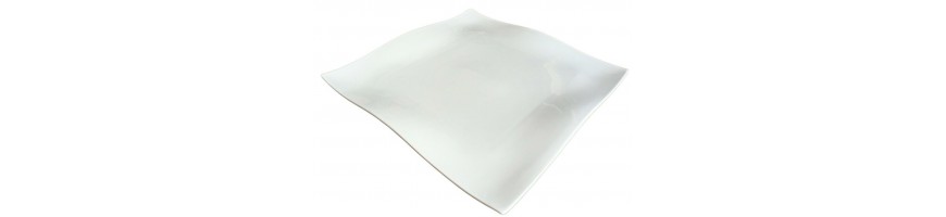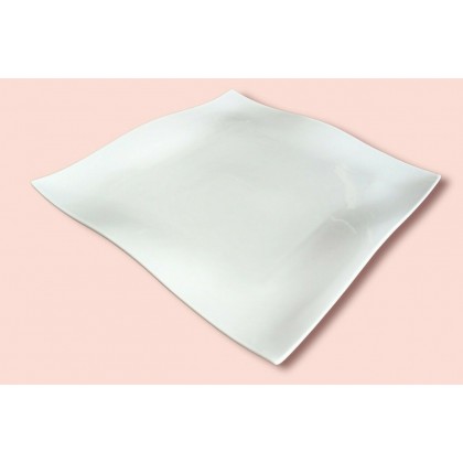 Piatto quadrato, ondulato, in fine porcellana bianca