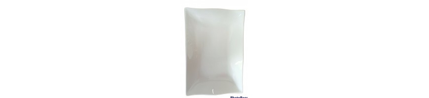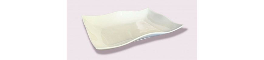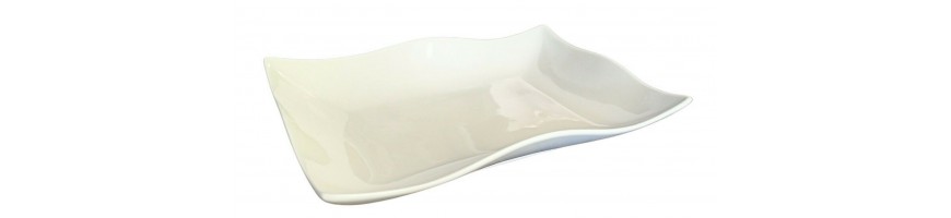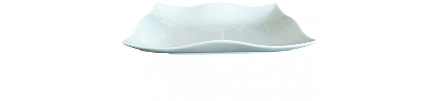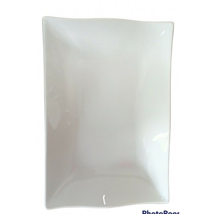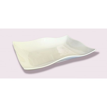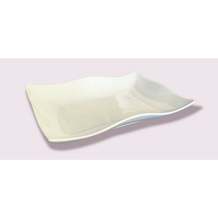 Vassoio rettangolare fondo, ondulato, in fine porcellana bianca