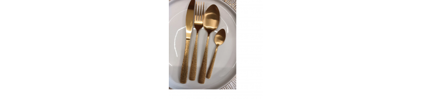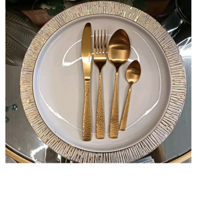 Ogni posata è resistente e di alta qualità , in acciaio inox in color oro, con particolare lavorazione effetto martellato, che conferisce raffinatezza ed eleganza a questo set. Adatto per le occasioni speciali, questo servizio posate stupirà i suoi ospiti.