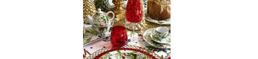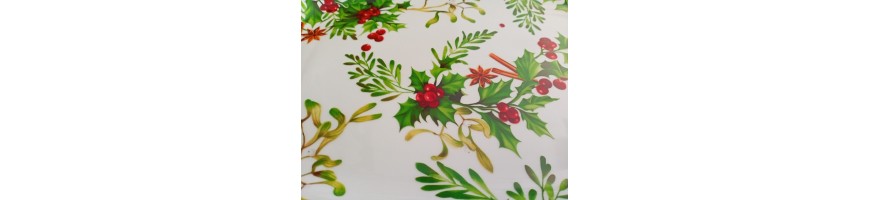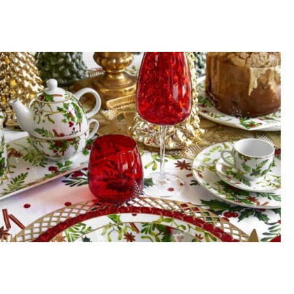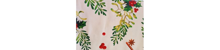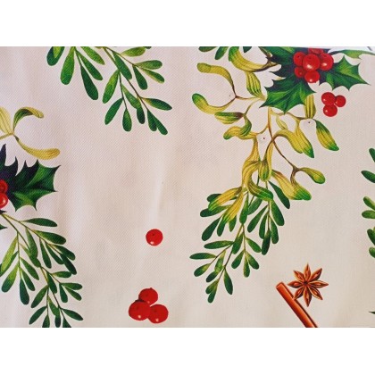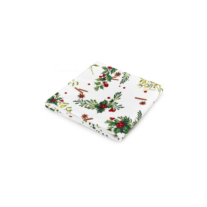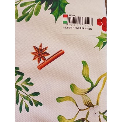 La tovaglia 140 x 240cm della linea Redberry, caratterizzata dal decoro tradizionale pungitopo e spezie, é perfetta per la tua tavola di Natale