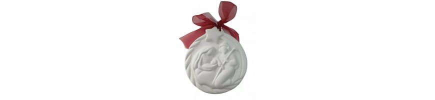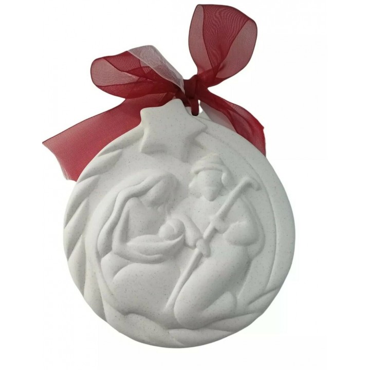 Medaglione Sacra Famiglia  Ø 10cm in Ceramica Wald bianco