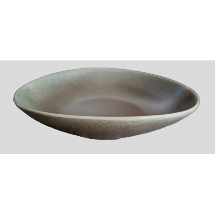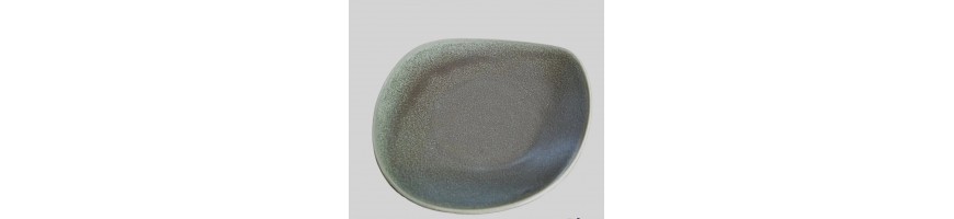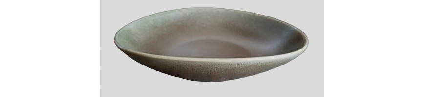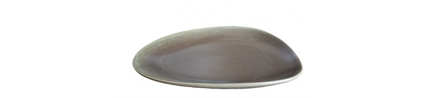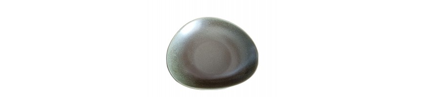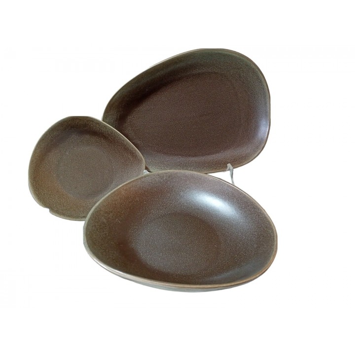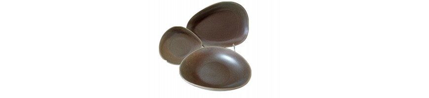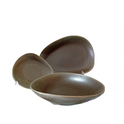 Servizio realizzato in porcellana materica con forma irregolare effetto naturale colore marrone (legno)