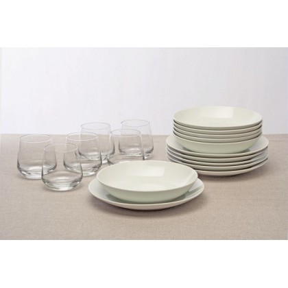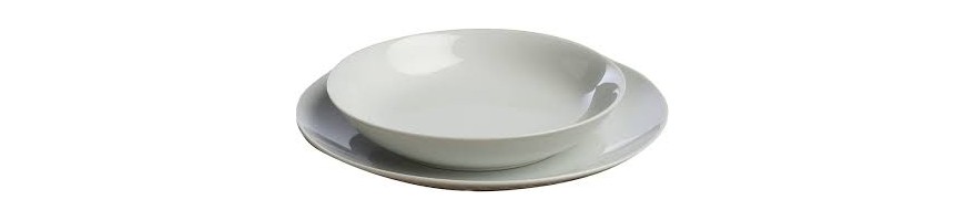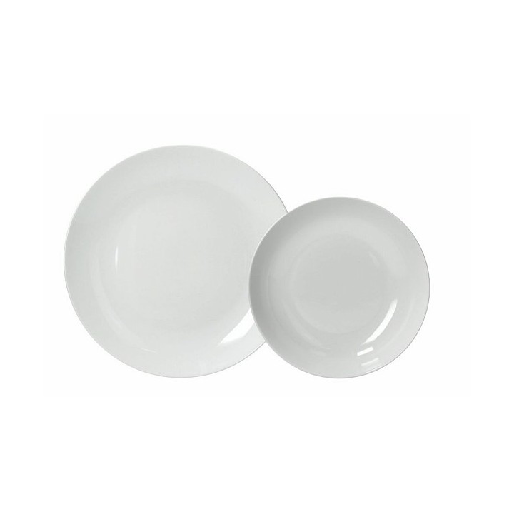 Servizio piatti per 6Â persone 6 piatti piani + 6 piatti fondi in porcellana bianca, linea Metropolis