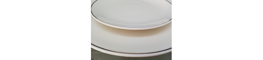 Forme essenziali che esaltano la purezza della porcellana bianca arricchito con un sottile filo Platino che rende queste stoviglie eleganti per una mise en place raffinata per tutte le occasioni
