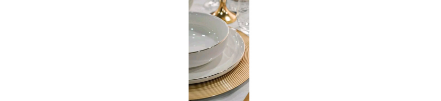Stoviglie in fine porcellana bianca dalla forma moderna ed elegante,
