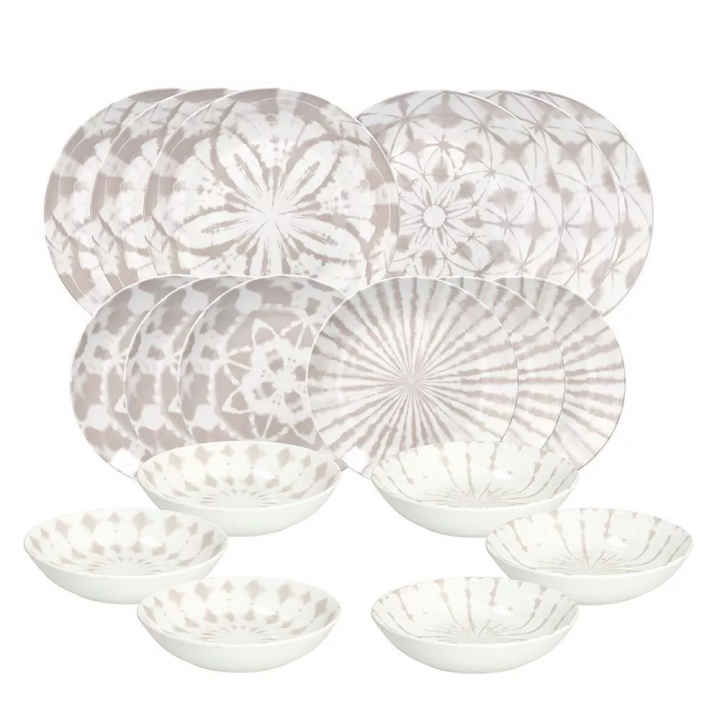 Le delicate sfumature nei toni neutri creano un effetto visivo armonioso, perfetto per chi ama uno stile moderno ma al tempo stesso sobrio e raffinato. Ideale per l’uso quotidiano e per le occasioni speciali, questo servizio piatti aggiunge un tocco di classe a ogni pasto.