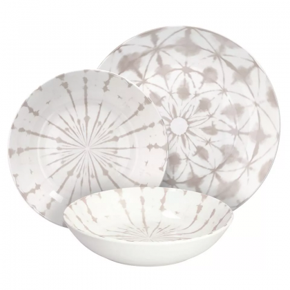 Il servizio piatti 18 pezzi è composto da 6 piatti piani da 27 cm, 6 piatti fondi da 20 cm e 6 piatti dessert da 19 cm, offrendo una soluzione completa per servire ogni portata con eleganza e praticità .