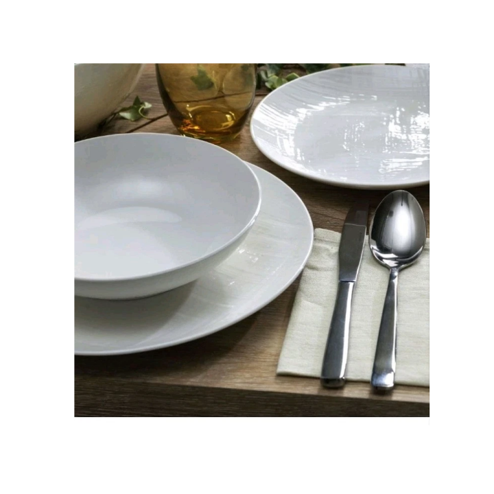 Il set comprende: 6 piatti piani da 27 cm di diametro, 6 piatti fondi da 23cm di diametro, 6 piatti dessert da 21cm di diametro