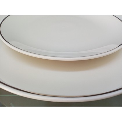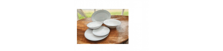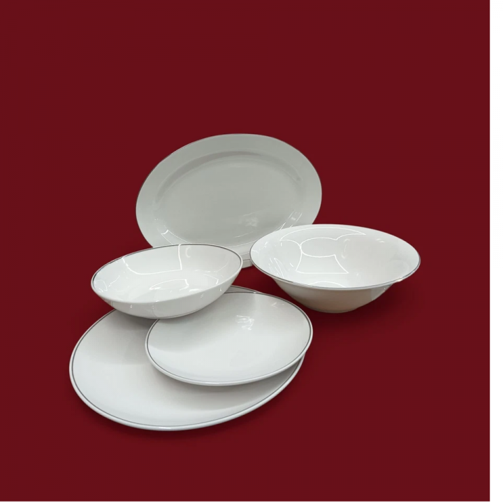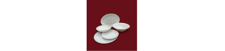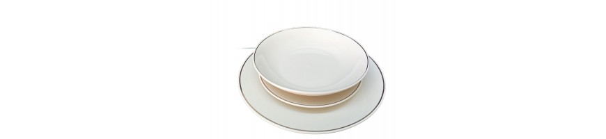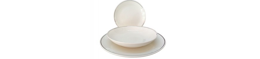 Forme essenziali che esaltano la purezza della porcellana bianca arricchito con un sottile filo Platino che rende queste stoviglie eleganti per una mise en place raffinata per tutte le occasioni