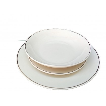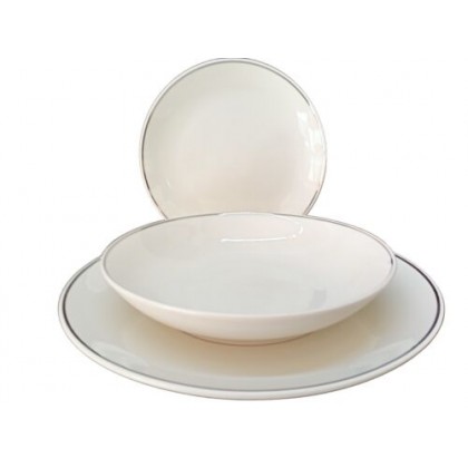 Servizio piatti per 12 persone 38Pezzi in porcellana bianca, linea Metropolis Filo Platino