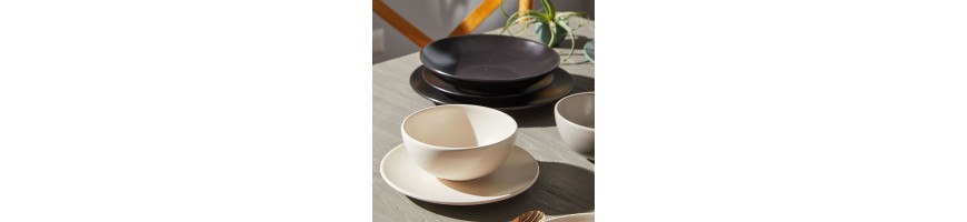 I piatti della linea possono essere combinati tra piani, fondi e dessert creando dei posto tavola monocromatici o combinando le varie tonalità per ricercare il mix perfetto per una mise en place colorata