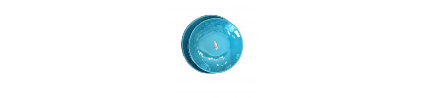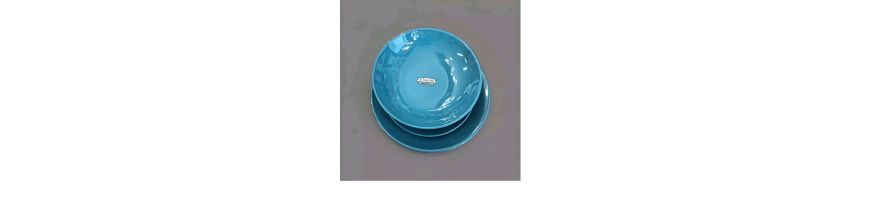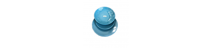 Stoviglie realizzate in Ceramica Forte (Stoneware) colore verde-ottanio abbinabile tra di loro per creare un allegro Mix di piatti e tazze sulla tua tavola.