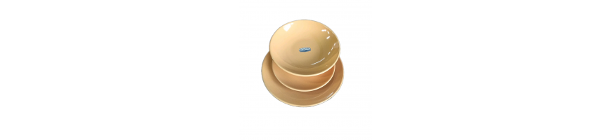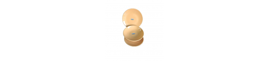 Stoviglie realizzate in Ceramica Forte (Stoneware) colore giallo abbinabile tra di loro per creare un allegro Mix di piatti e tazze sulla tua tavola.