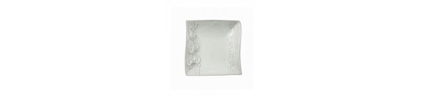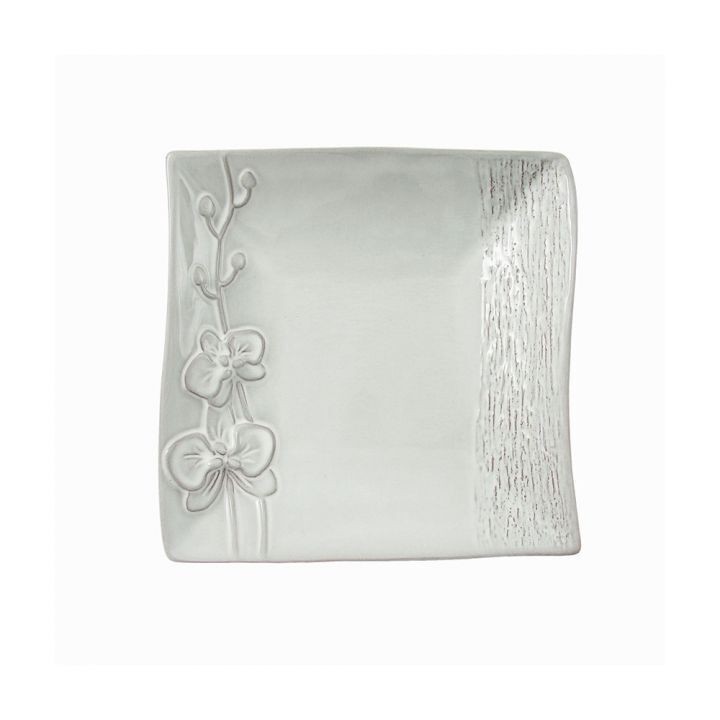 con lavorazione a mano decoro Orchidea colore grigio chiaro con finitura lucida