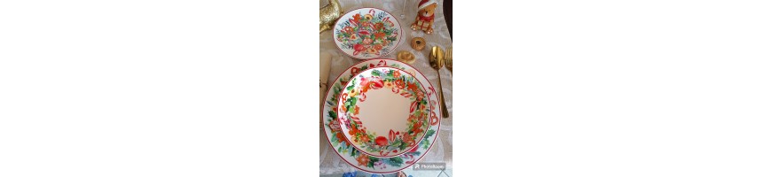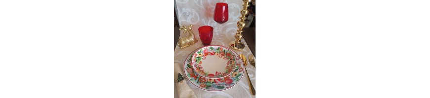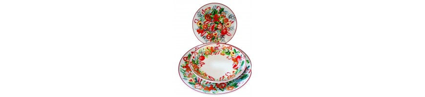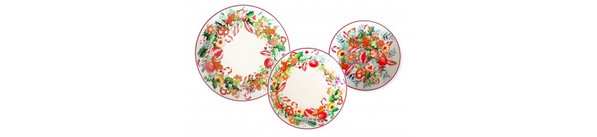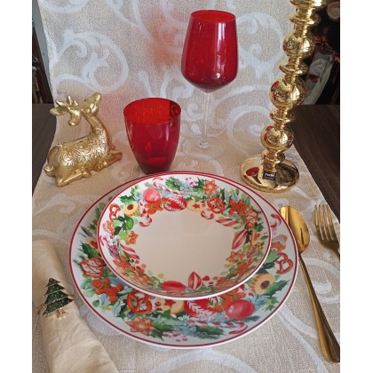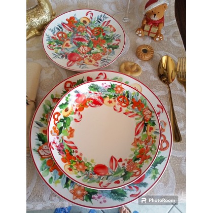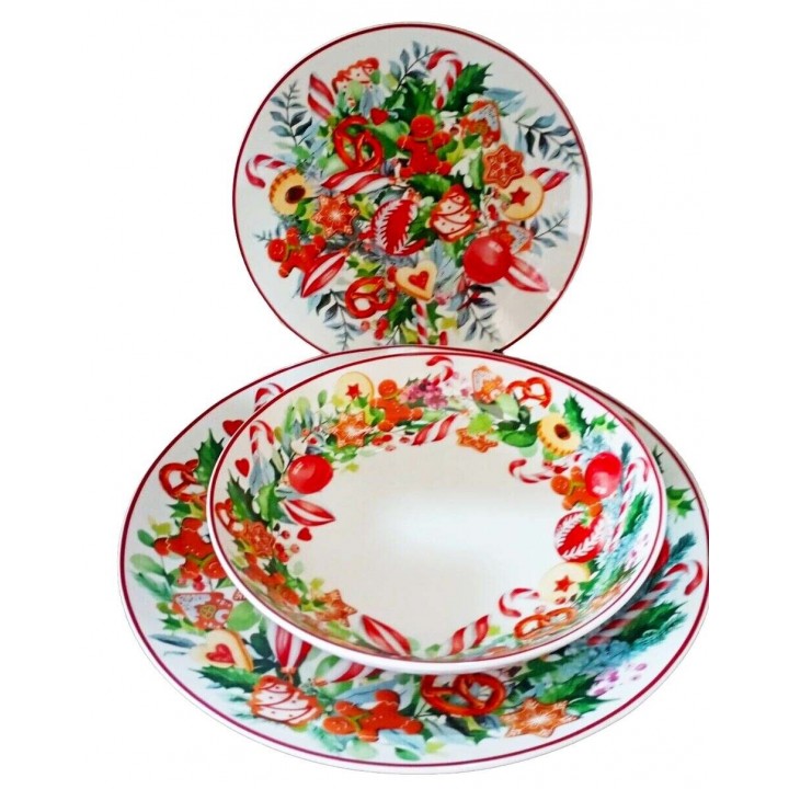 Servizio piatti per 6 posto tavola in porcellana decoro natalizio Penny