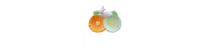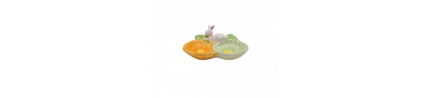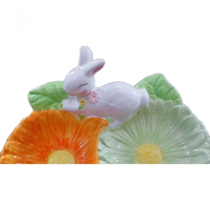 Vassoio forma Fiore 2 posti con coniglietto in Ceramica 20,5x15xh9cm