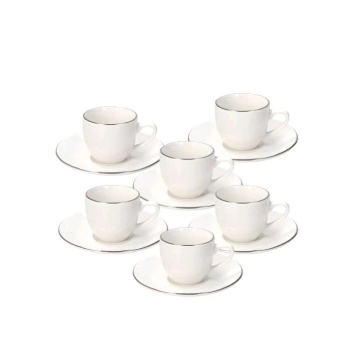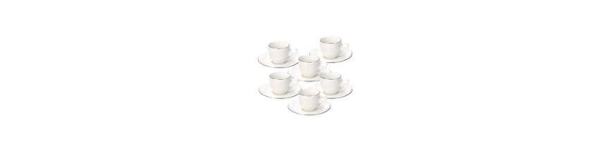 Tazzine Caffè Metropolis Filo Platino, Porcellana Bianca Tognana