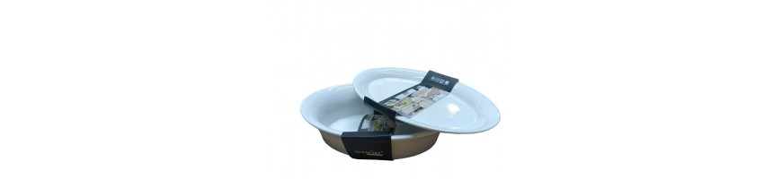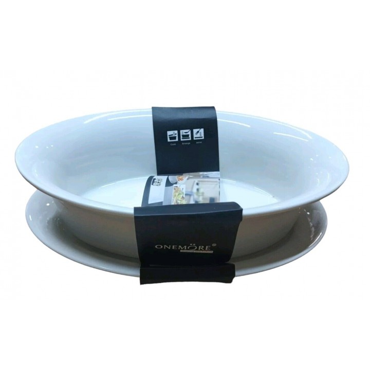 Pirofila Ovale da forno completa di piatto in porcellana resistente