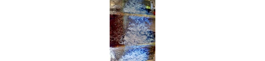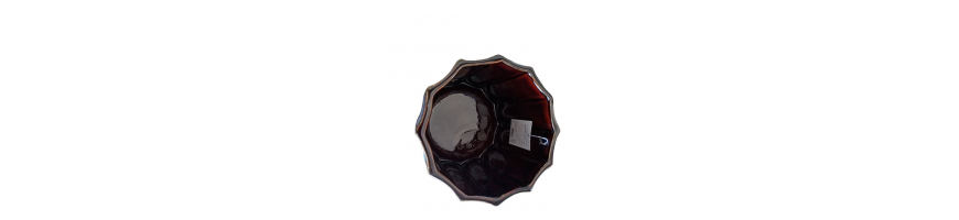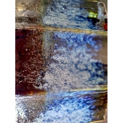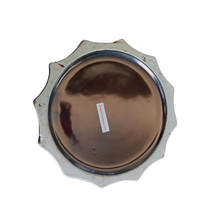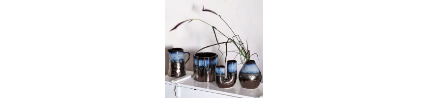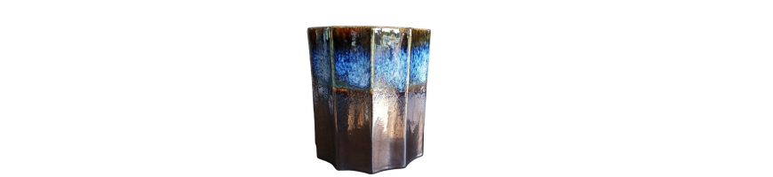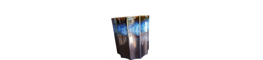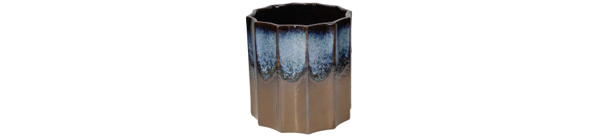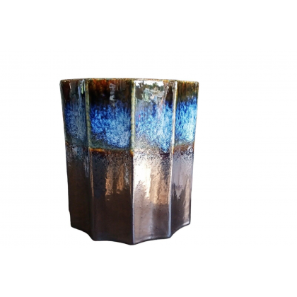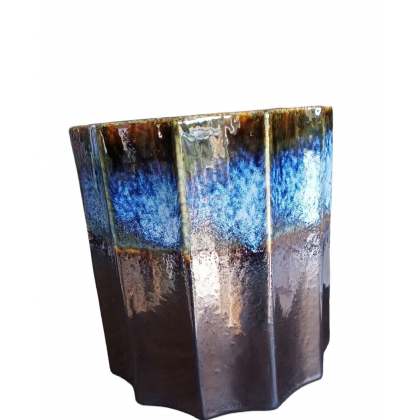 Vaso in ceramica colore bronzo e azzurro con sfaccettature sui bordi. Linea Enigma di A.Fontenbasso