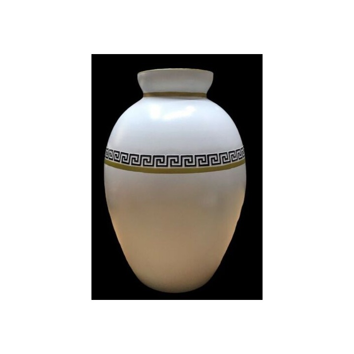 Vaso in vetro artistico bianco con greca nera, h 30 cm