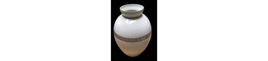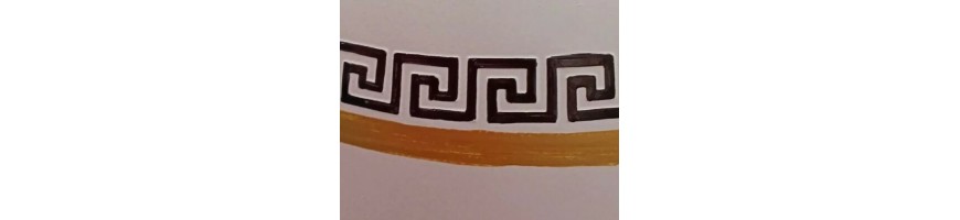 Elegante Oggetto d'Arredamento realizzato in vetro decorato a mano greca colore nero e filo oro.