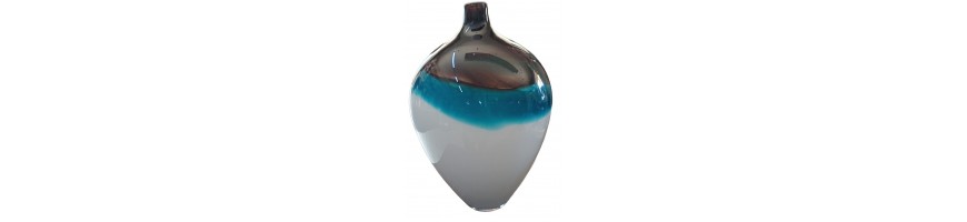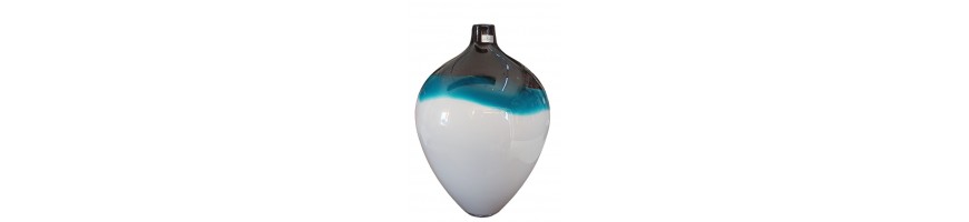 Vaso Musa in Vetro artistico bianco-blu h 37,5 cm Scherzer