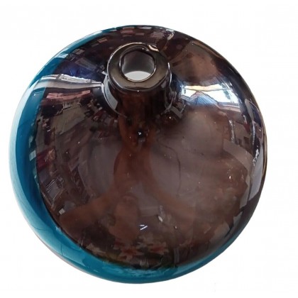 Oggetto d'arredamento dalla forma moderna con base tonda di colore bianco, centrale a stringersi colore azzurro poi a chiudersi colore moka quasi nero.