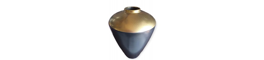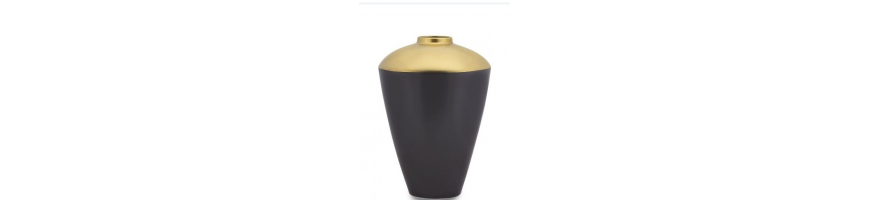 Vaso Golden Age 56477 marca Fade Maison Oggetto d'arredo dalla forma classico realizzato in porcellana spessa colore moka scuro con parte alta colore oro.