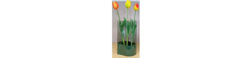 forma lineare e pulite realizzato in vetro colore verde con parte inferiore colore pieno e parte superiore semi-trasparente.