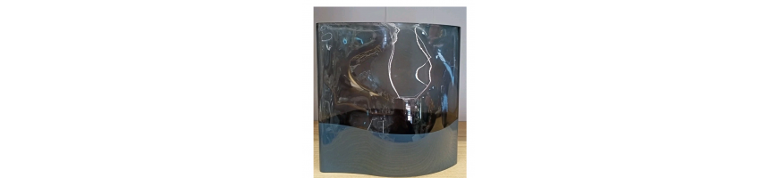 forma lineare e pulite realizzato in vetro colore grigio-fumo con parte inferiore colore pieno e parte superiore semi-trasparente.