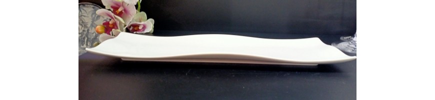 Piatto Antipasti/Sushi Helton, profili ondulati in fine porcellana bianca 39cm