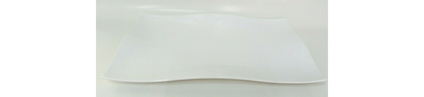 Vassoio rettangolare, ondulato, in fine porcellana bianca