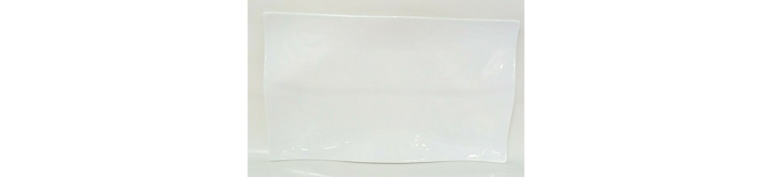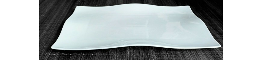 Vassoio rettangolare, ondulato, in fine porcellana bianca