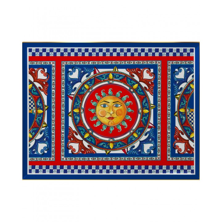 Una collezione tipica e avvincente. Atmosfera e immagini dell’area mediterranea trovano spazio nella collezione Sole Mio per dar voce, attraverso il mondo del design, alla bellezza senza tempo di tutte quelle terre bagnate dalla culla della civiltà occidentale Le atmosfere mediterranee e lo spirito libero di una terra meravigliosa prendono forma con un exploit di colori, profumi e suggestioni Il blu e il rosso si fondono al giallo e alle mille sfumature dell’oro per racchiudere metaforicamente in oggetti d’uso quotidiano, tutto il calore e il sapore inconfondibile del Mare Nostrum